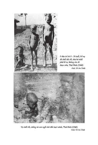 3 đứa trẻ từ 5 - 10 tuổi, bố mẹ đã chết đói rồi, đứa bé nhất phải lê ra, không còn đi được nữa, Thái Bình (1945) Ảnh: Võ An Ninh Vợ chết rồi, chồng và con ngồi chờ đến lượt mình, Thái Bình (1945) Ảnh: Võ An Ninh
