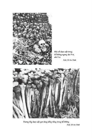 Hài cốt được xếp trong bể bêtông ngang dọc 9 m, sâu 3 m Ảnh: Võ An Ninh Xương ống được xếp gọn từng đống riêng trong bể bêtông Ảnh: Võ An Ninh